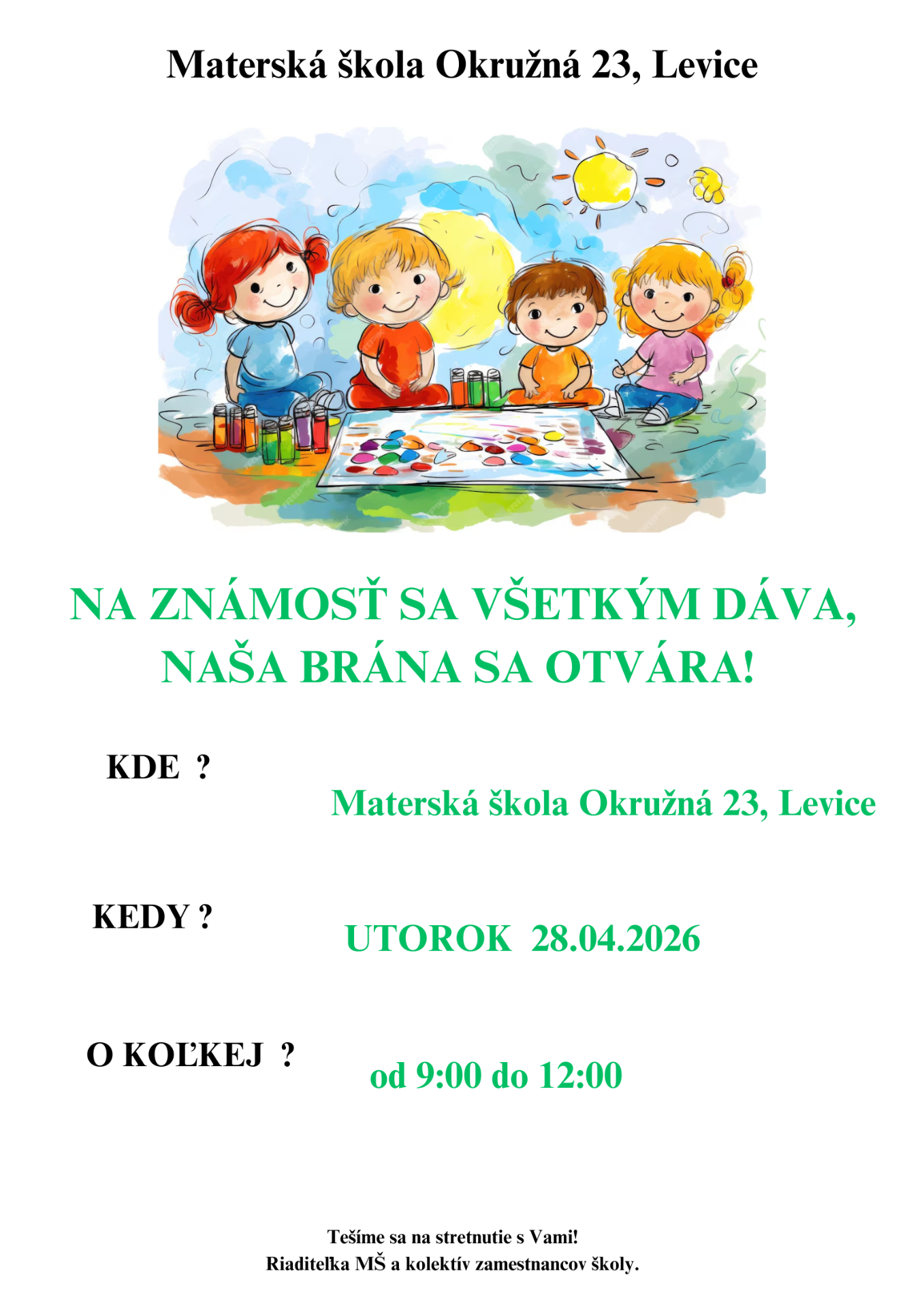 Ak ešte váhate, prosíme Vás, venujte nášmu Rodičovskému združeniu finančné prostriedky 2 % dane na zabezpečenie skvalitnenia výchovno – vzdelávacej činnosti pre Vaše deti a uskutočnenie realizácie projektov súvisiacich s podporou zdravia. S Vašou pomocou máme záujem sa podieľaťna úprave školského dvora (natieranie lavičiek a preliezačiek...),...